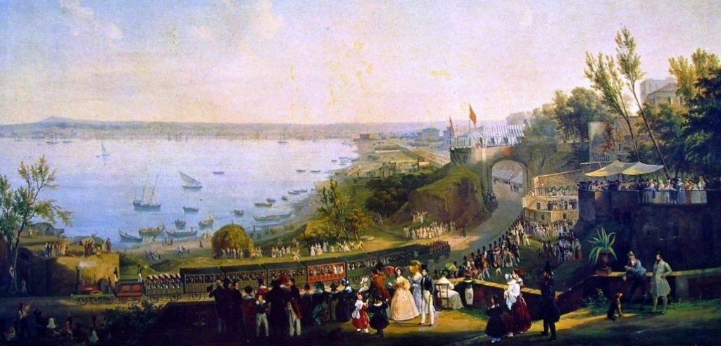 La fabbrica sorgeva al fianco del primo tratto di ferrovia italiana, inaugurato nel 1839 con un solenne viaggio della corte borbonica in due carrozze che partite dalla stazione di Napoli al Carmine giunsero dopo undici minuti a quella di Portici al porto del Granatello, poco distante dalla residenza borbonica.